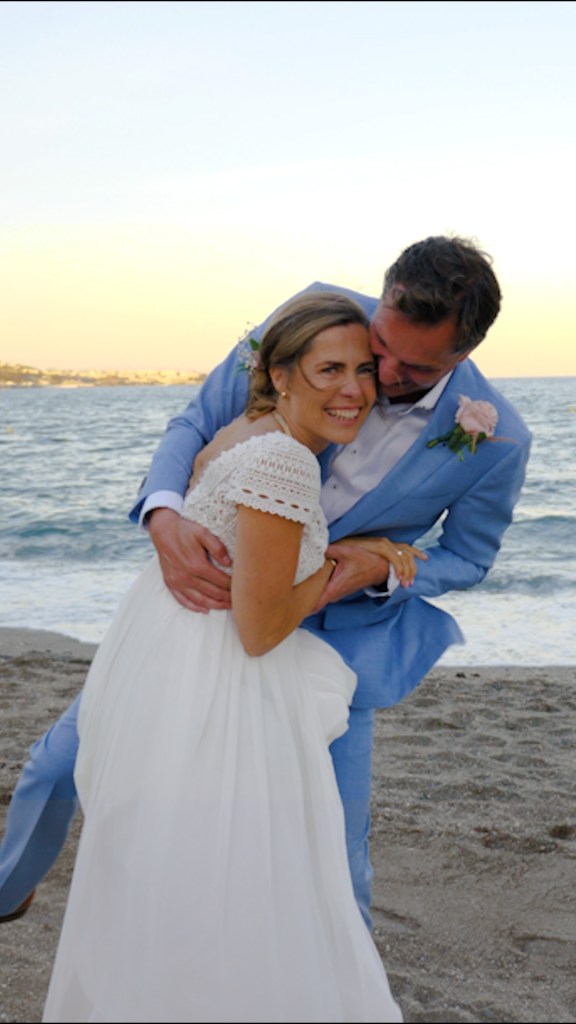 They met at a wedding in Nerja and after 4 yours got married in the same place.